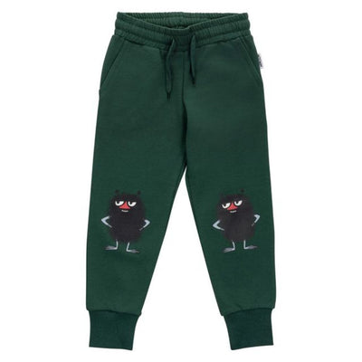 Grænar jogging buxur skreyttar myndum af prakkaranum honum Pjakk á hnjánum.